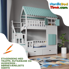 Etagenseng med trappe, rutsjebane og husdesign – børneværelsets hjerte